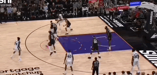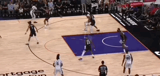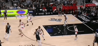 文班甚至不用叫掩护,单靠自己突破五号位防守人就能引来两人协防,极大简化了马刺的进攻战术